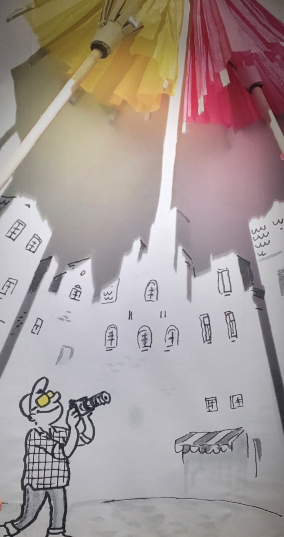 요건 2층에서 3층으로 올라가는 구간에 있던 벽화다. 군데군데 벽화와 설치된 조형물들이 있어서 포토존으로 활용할 수 있다. 전시장 내 촬영이 가능해서 더욱 즐겁게 돌아다녔다.