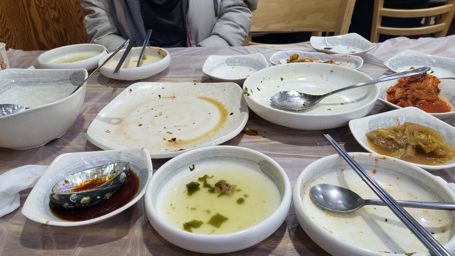 전복장이 나오는데 미리 먹지 말고 밥이랑 먹으면 꿀맛이다. 밥이 기본으로 나오는 건 아니라서 밥 주문해서 같이 드셔보시길! 글쓴이는 비빔밥 주문했음