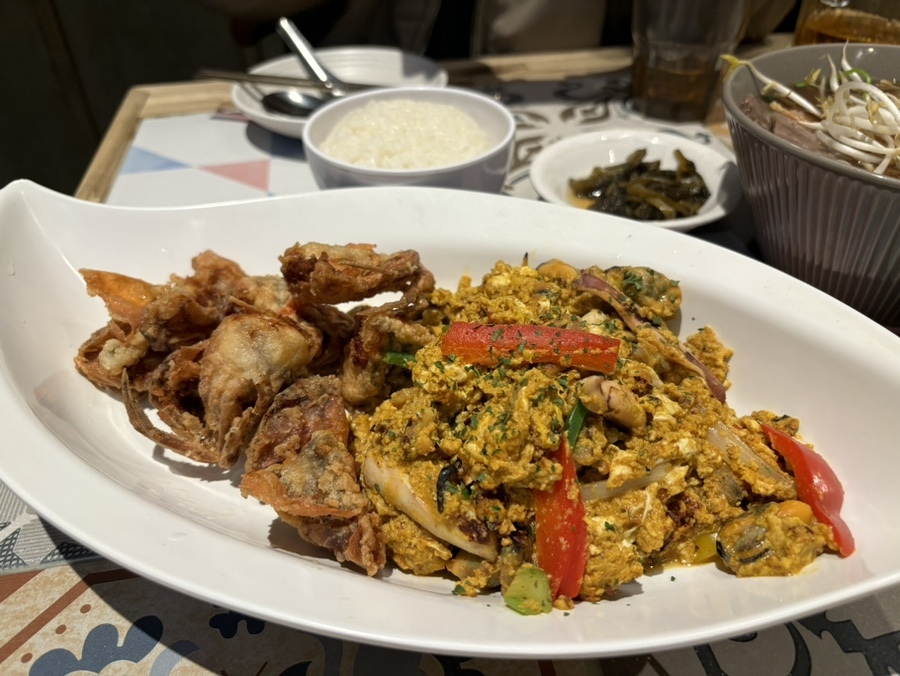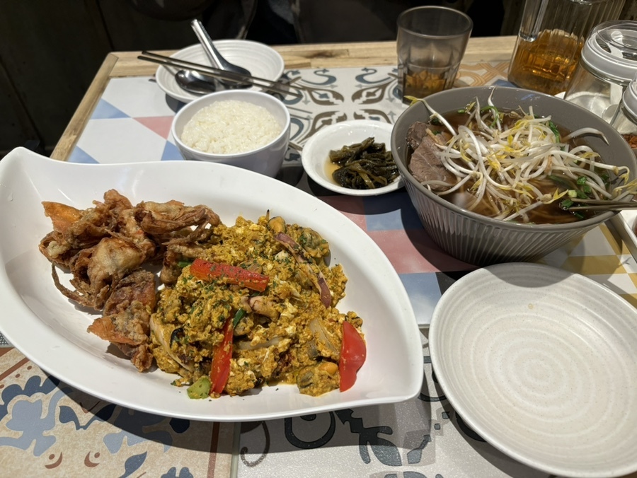 뿌팟퐁커리다! 능두네 시그니처 메뉴라고 할 수 있고, 처음 먹었을 때의 그 전율을 못 잊음. 꽃게 튀김에 바지락, 홍합, 오징어 등 해산물을 볶은 카레와 밥이 같이 나온다. 말그대로 카레다! 오 근데 오늘은 조금 많이 내 입맛엔 짜다 느껴졌다. 조금 아쉬웠다.