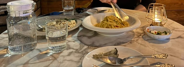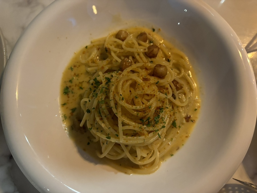 궁금해서 주문해 본 성게알 어란(23,000원) 성게알은 못 참기 때문에 바로 주문한 오일 파스타다. 녹진한 성게알과 최상급 어란으로 맛을 내었다고 한다. 고소한 맛이 좋다. 성게알이 위에 통째로 올라가지 않아서 비주얼 상으론 일반 오일파스타처럼 느껴지지만