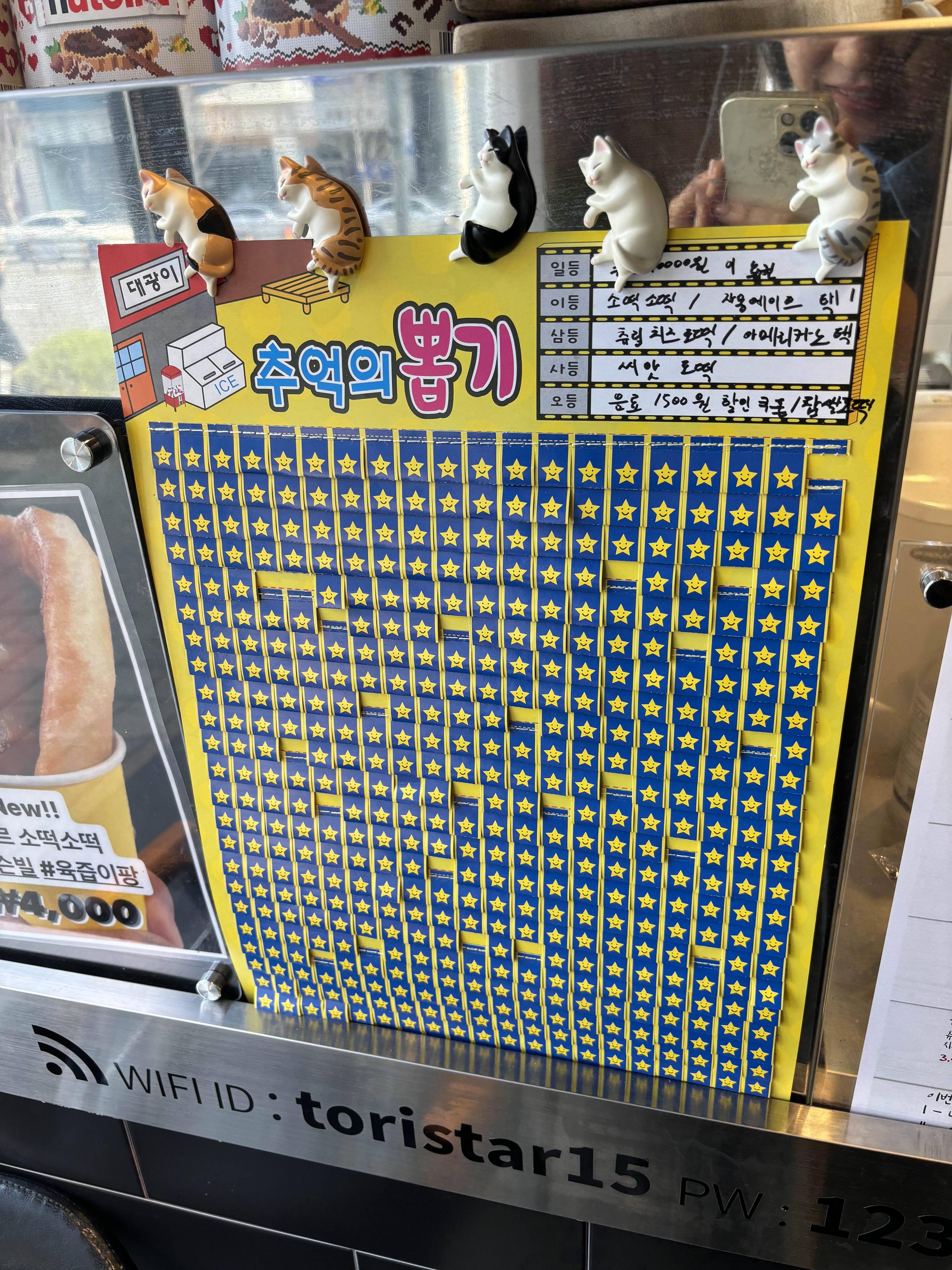 늘 한번쯤은 가봐야지 싶었는데 줄이 길어서 엄두도 못 내다가 2024년(아직 입에 붙지도 않은 새해) 에 두 번이나 방문하게 되었다. 물론 맛있어서였다. 여전히 토리스타의 흔적이 남아있는 곳! 츄르 호떡은 한 가족이 운영하시는 듯 보였는데 무척 단란한 느낌이라 괜시리 나도 기분이 좋아지더라.