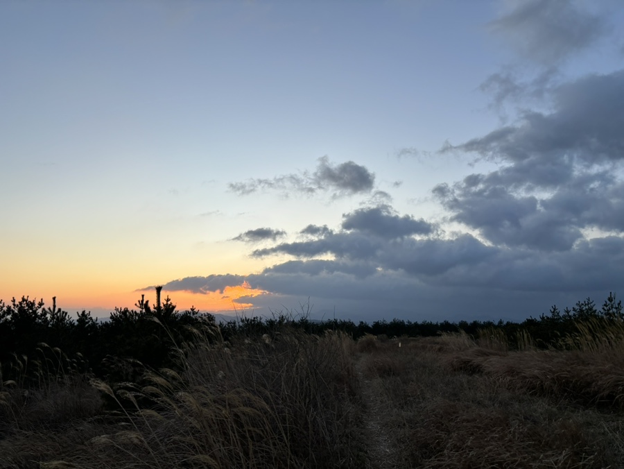 석양을 보러 갔는데 한 팀이 더 있었고 내려올 땐 전세를 내고 백약이 오름을 점령했다. 마른 수풀들이 바람에 휘날리는 소리가 마치 파도 소리처럼 느껴졌다. 말소리도 들리지 않으니 더더욱 고요했다. 이렇게 백약이 오름은 추천하는 오름 중 하나가 되었다.