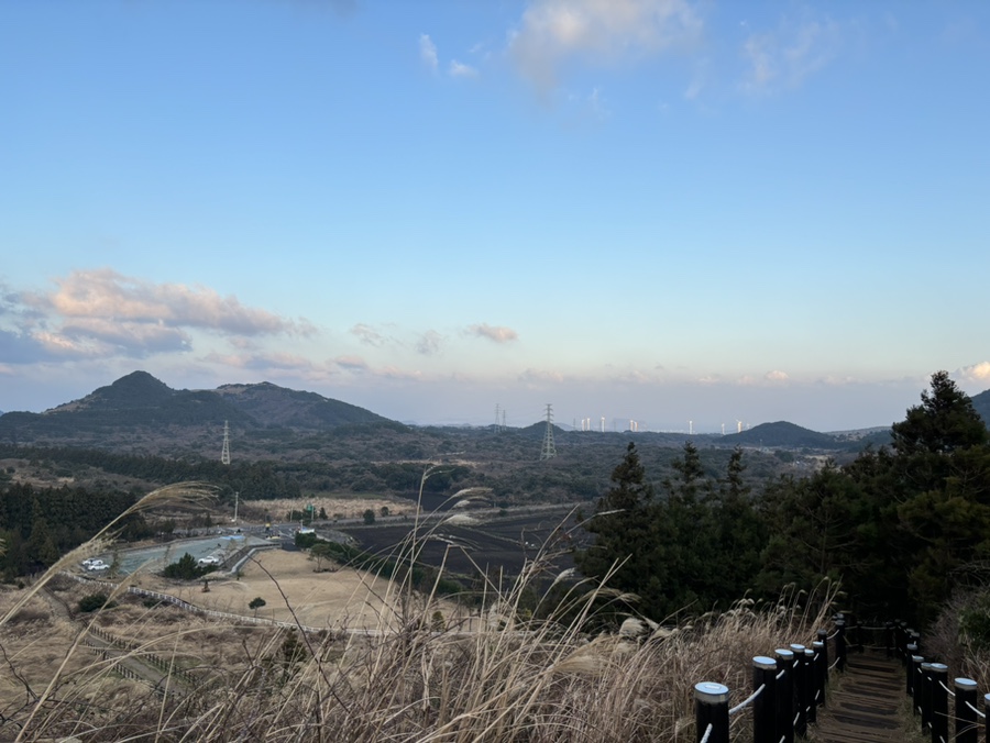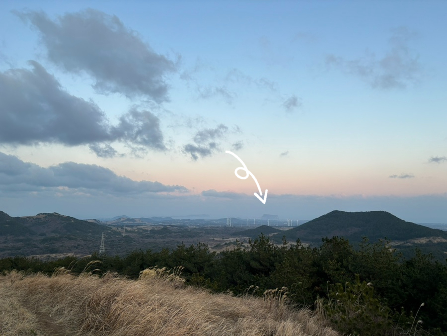 다음날 목적지인 성산일출봉도 보인다. 감사하게도 첫날 눈비가 내렸지만, 여행계획이 있던 2, 3일 차엔 날씨가 무척 맑아서 시야가 탁 트였다는 점이다.