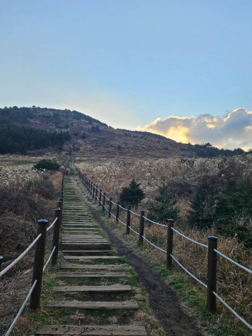 백약이오름 진입로로 걸으면 계단이 섞인 경사로가 나오는데, 어렵지 않고 오전에 걸었던 물영아리 오름에 비해서는 난이도 하에 가깝다.