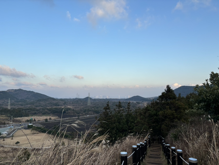 그리고 물영아리 오름과 다르게 좋았던 것은 시야가 트여있다는 점이었다. 오르고 뒤를 돌아보면 여러 오름과 함께 아름다운 풍광이 펼쳐졌다.