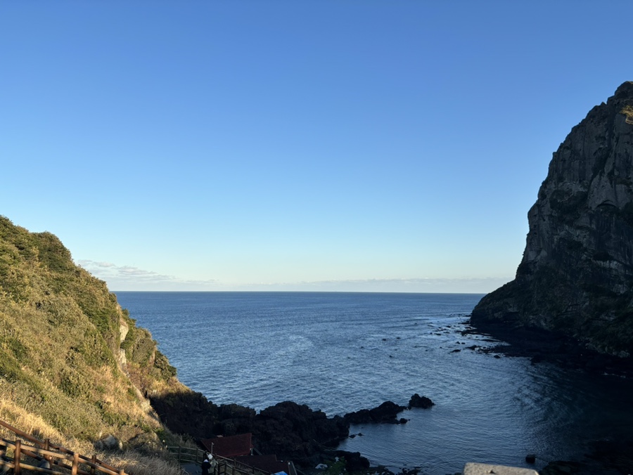 석양은 숙소로 돌아가는 길에 보도록 하고... 엄청 깊어 보이는 파란 바다와 성산일출봉을 제대로 만끽하며 돌아간다.