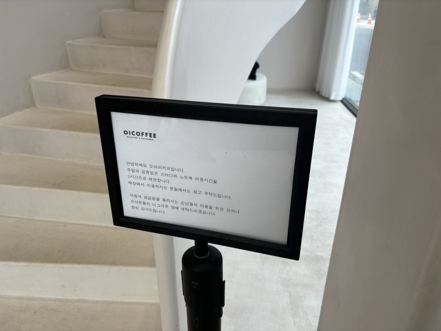 - 오아이커피가 좋은 것은 오전 8시부터 24시까지 운영해 밤 늦게까지 시간을 보낼 수 있다는 점과