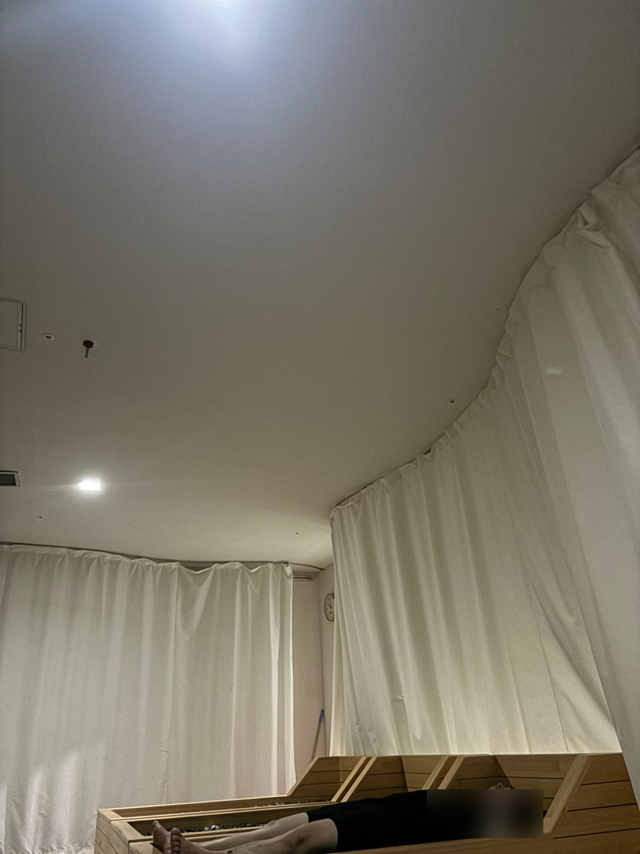 - 양생 하모니 테라피(화)-돔 형태의 습식 사우나 공간에서 홍삼 가루가 들어간 머드팩을 얼굴에 바르고 온열 의자에 앉아 피부 각질 제거 및 영양 공급을 한 후 천정에서 쏟아지는 안개비와 소낙비같은 물줄기에 씻고 나옴. 머드팩은 얼굴을 바를 정도로 소량 제공됨. 피부 모공이 조금 열렸을 때 하면 좋을 것 같아 프로그램 후반부에 하러 감.