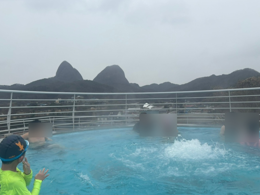 - 구비된 것: 샴푸, 린스, 바디워시 및 수건, 헤어드라이기, 탈수기, 수영복 넣을 비닐