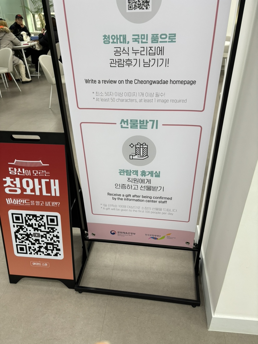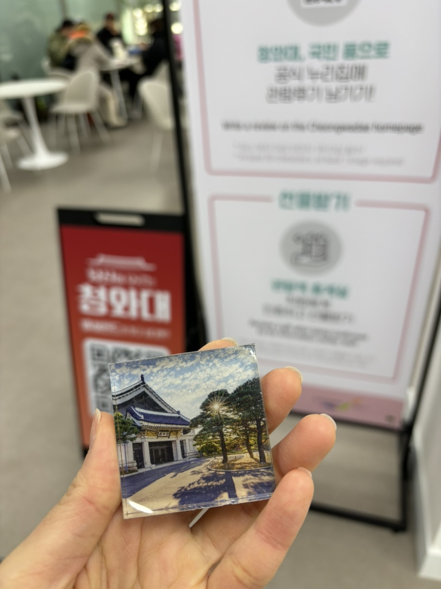 - 관람객 휴게실인 여민 1관에서 포토후기를 남기고 마그넷 선물을 받았다!