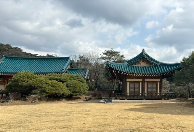 - 전통 목조 건축 양식으로 겹처마에 팔작지붕으로 청기와를 얹었다.