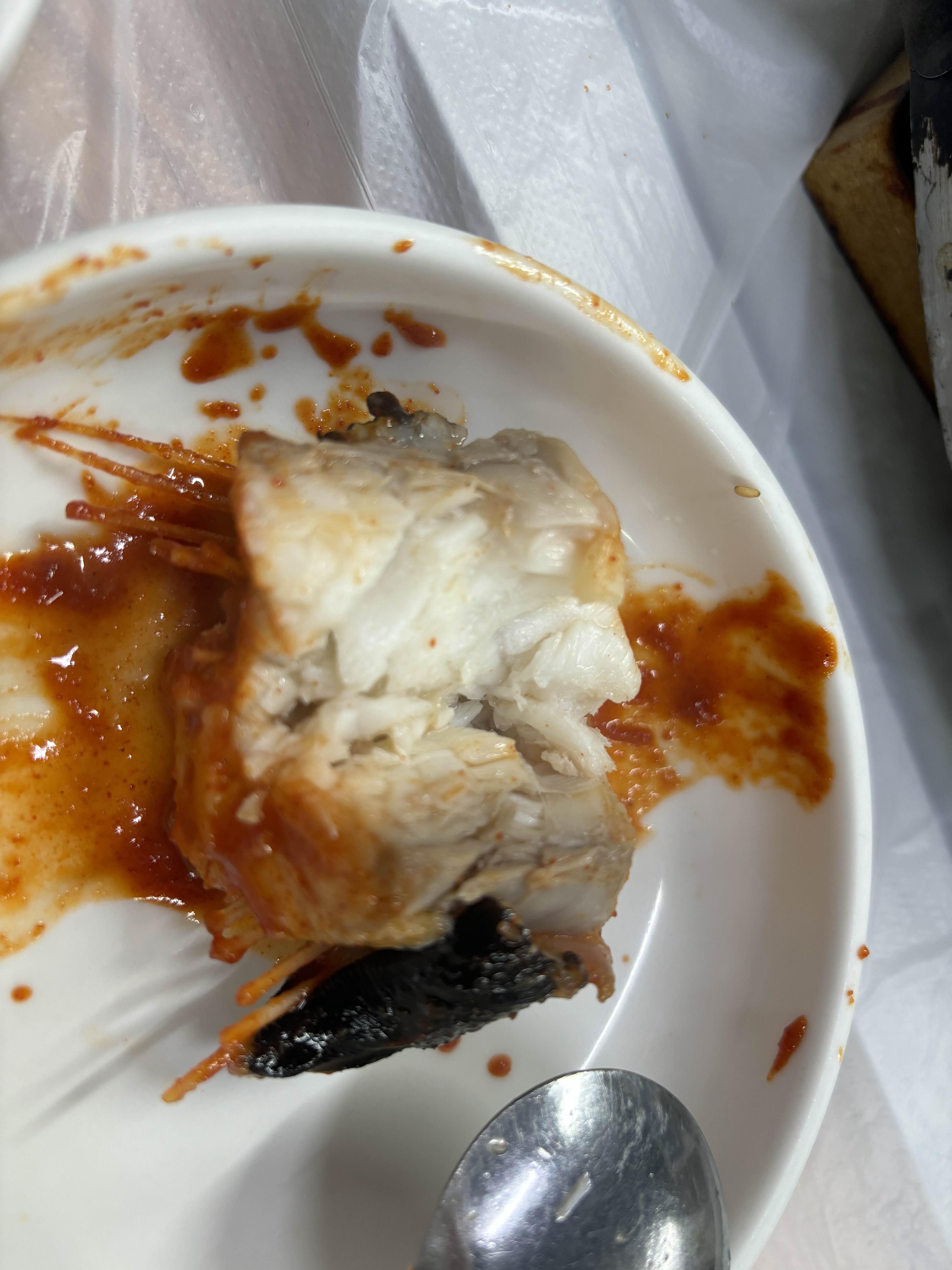 집게와 가위로 살을 분리해서 소스를 끼얹어 먹으면 된다. 워낙 양이 많아서 반 정도 먹고 나머지는 포장했다. 사장님이 무척 친절하셔서 소스도 다 가져가서 전자레인지로 데우지 말고 팬에 볶아 먹으라고 알려주셨다. 일회용기도 주셔서 엄청 감사했다.