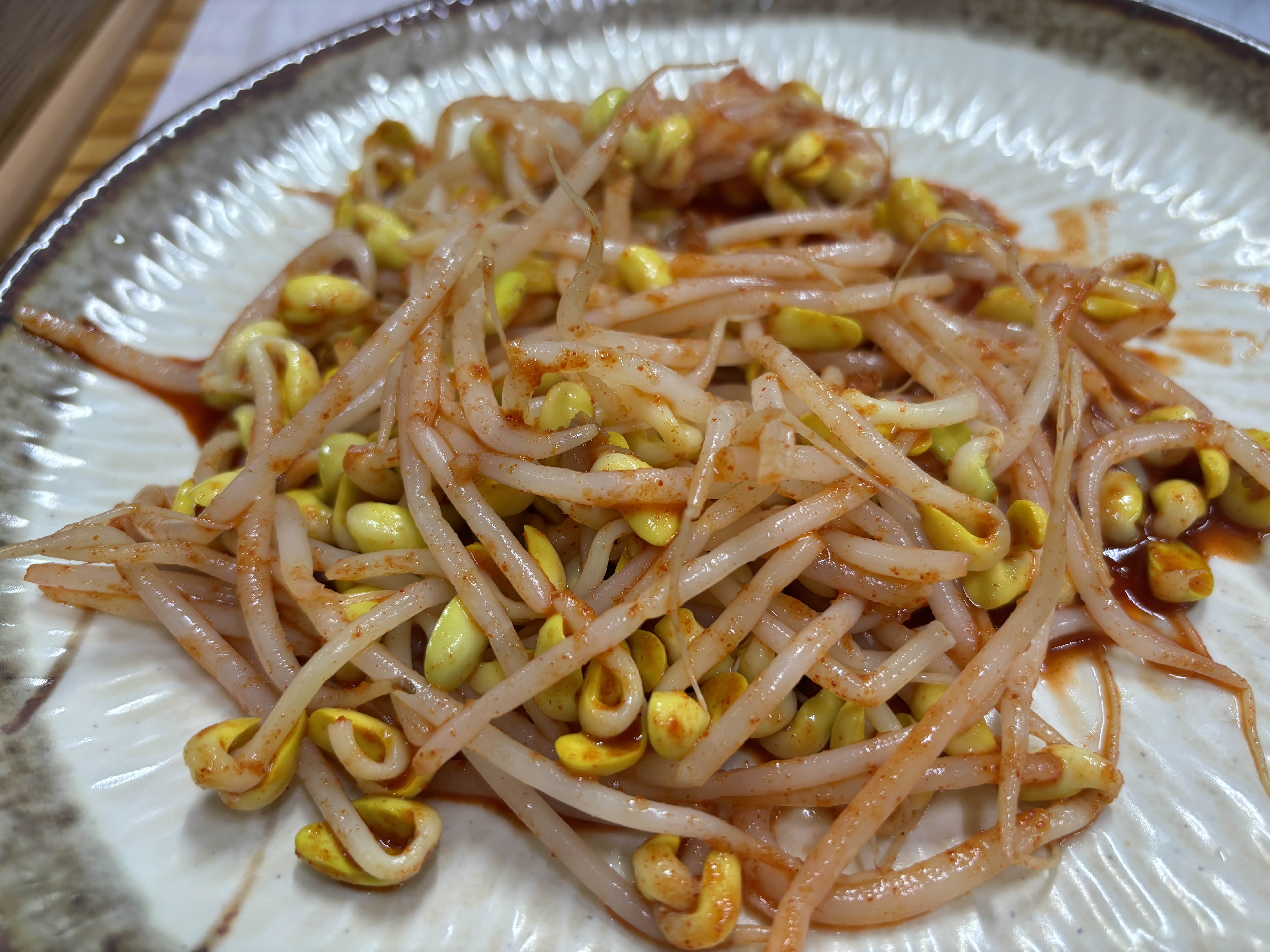 2인분의 아구 양이 상당하다. 살도 많고 소스도 매콤하니 맛있는 편! 콩나물은 따로 나온 것을 조금 얹어보았다.