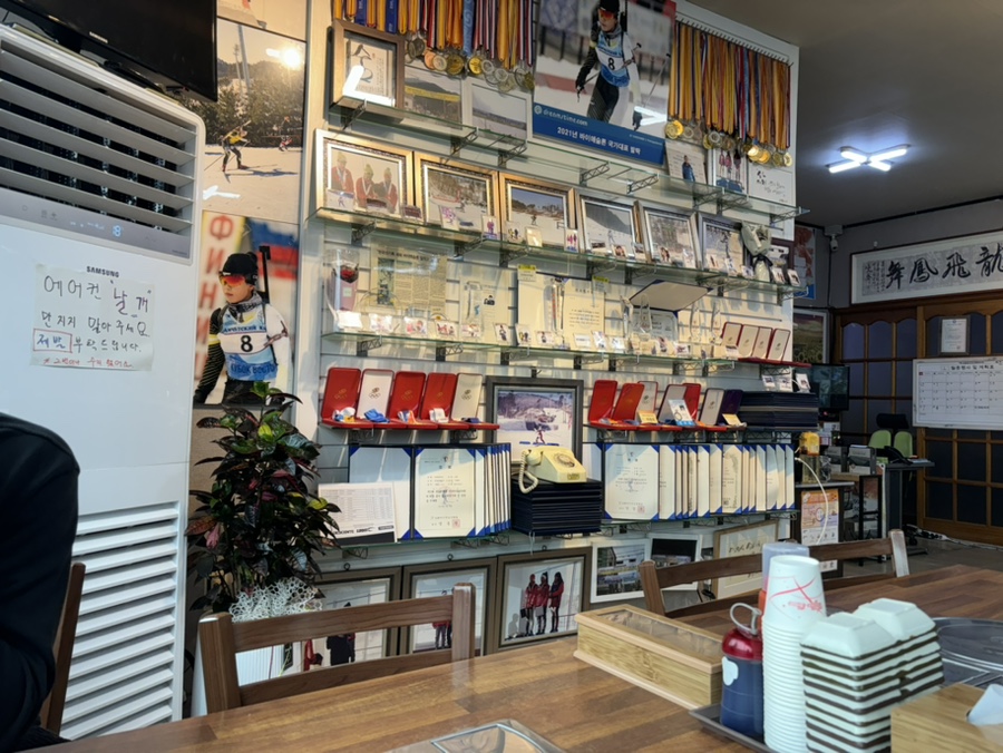 따님이 바이애슬론 국대이신듯하다. 딸바보 아빠의 면모가 보인다. 메달과 상장이 어마어마한 것이 실력도 엄청나신 듯...!