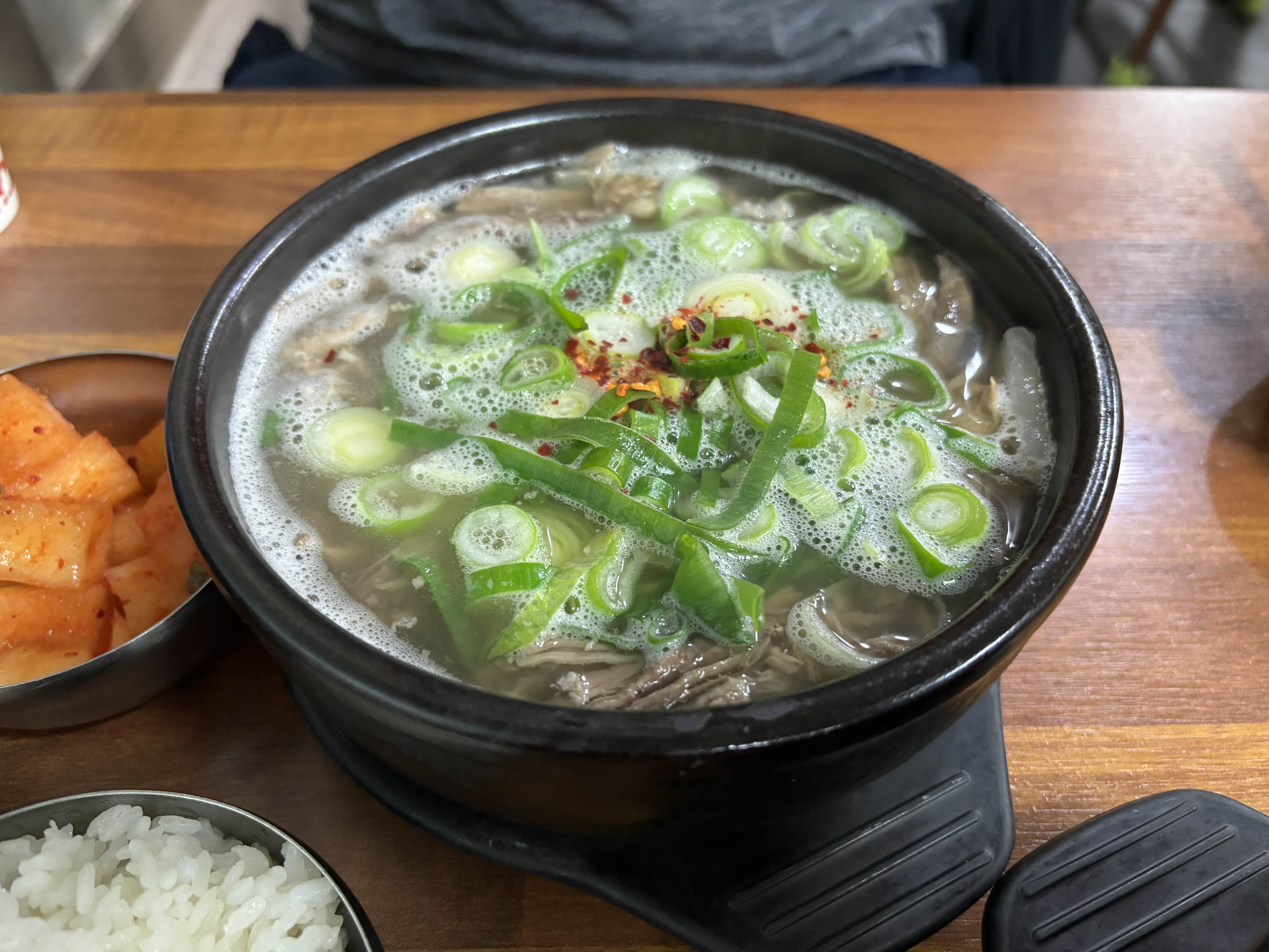 오랜만에 맛 본 소국밥도 내장탕과 가격은 동일, 8,500원이다. 소국밥은 내장탕과 다르게 밥이 말아져서 나왔다. 좀 더 펄펄 끓는 것이 맛이 좋았다. 기억했던 것보다 간이 강하고 양지도 부드러워 맛있었다. 오늘은 내장탕보다 소국밥이 더 맛있게 느껴짐.