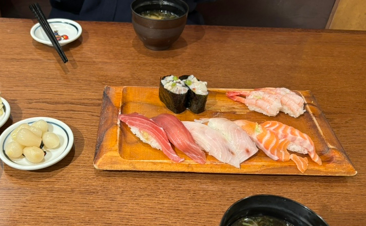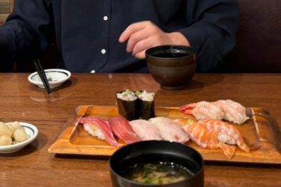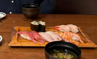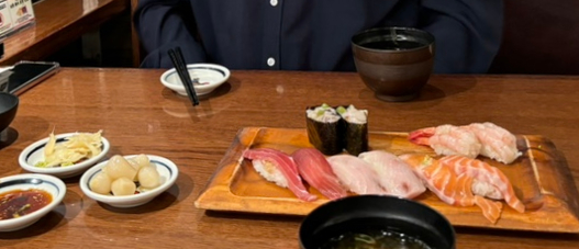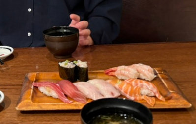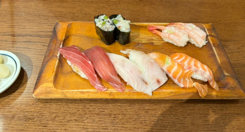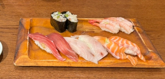 주문한 초밥이 나와서 하나하나 맛보았다.