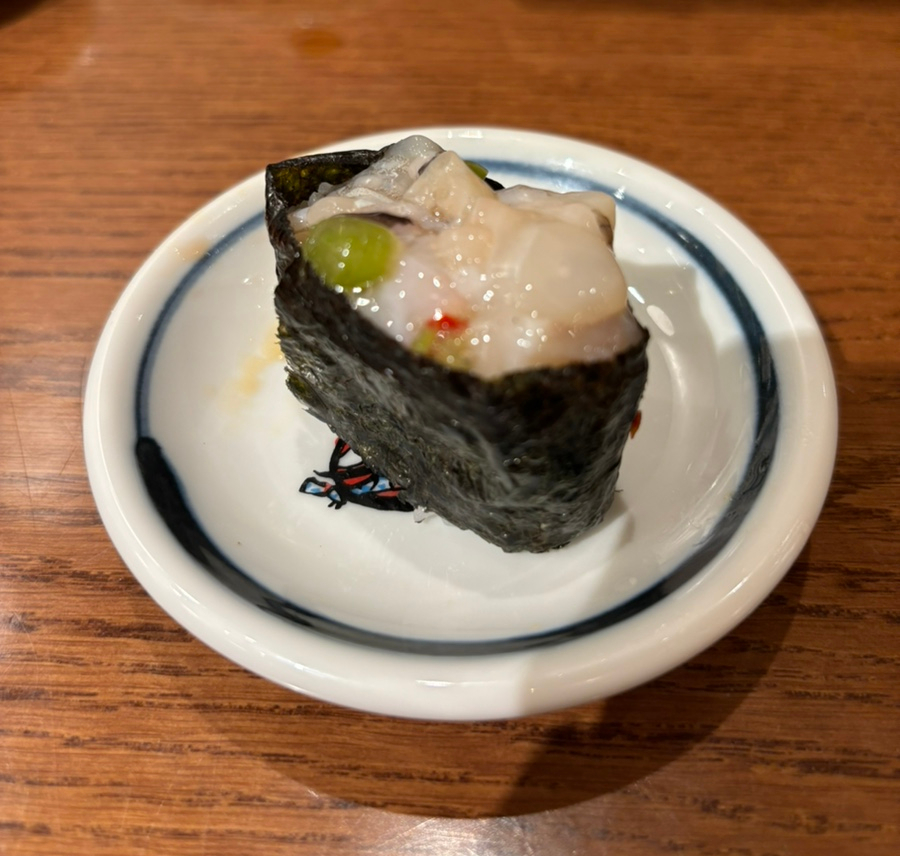 초밥집의 근본을 알 수 있는 광어를 의외로 가장 마지막에 선택... 역시나 맛있었다. 쫀득하고 깊은 숙성의 맛!! 광어는 2피스에 5,700원이었다.