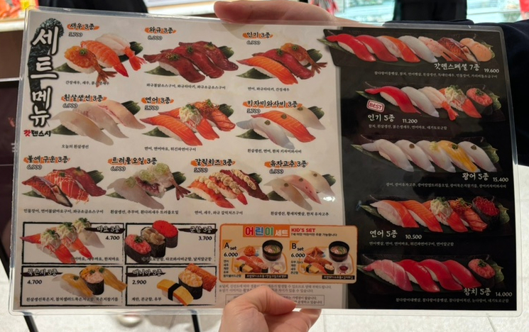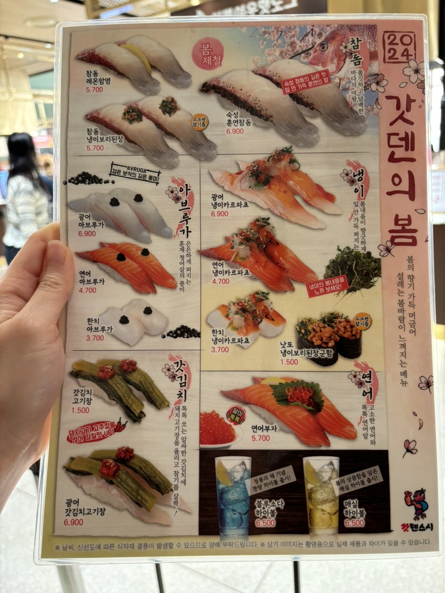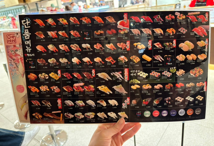 단품, 세트, 봄 메뉴가 있었다! 세트로 주문할까 하다가 하나하나 선택할 수 있는 게 회전초밥집의 묘미이기 때문에 단품으로 주문하기로 함!