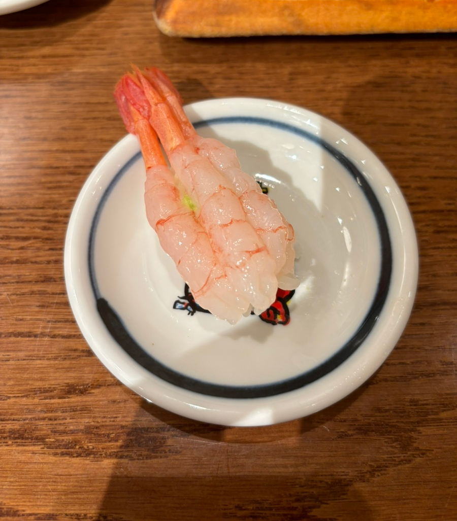 그다음은 단새우! 2피스에 5,700원이다. 쫀득쫀득 달달한 새우맛을 잘 살렸다! 새우 초밥은 늘 맛있다.