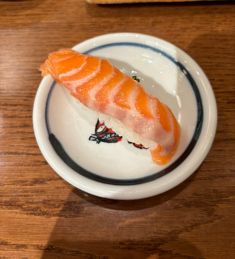 다음은 맛없기 어려운 연어! 기본 연어로 2피스에 2,900원이다. 초밥 맛있는 집에 직접 선택할 수 있으니 소스 없는 것들을 선택해보고자 했다. 본연의 맛 즐기는 게 좋으니까! 쫀득 달달해서 연어는 더 주문해 먹었다.