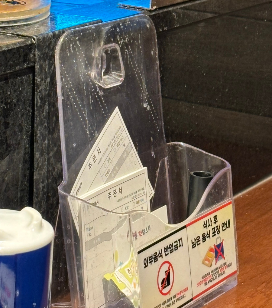 폐점 30분 전 주문 마감이었고, 7시에 웨이팅 시작해서 7시 25분에 자리를 안내받았다. 웨이팅 할 때 벤치가 있어서 편하게 한 편이다. 안내판도 미리 볼 수 있어서 보면서 뭐 먹을지 생각하고 있었다.