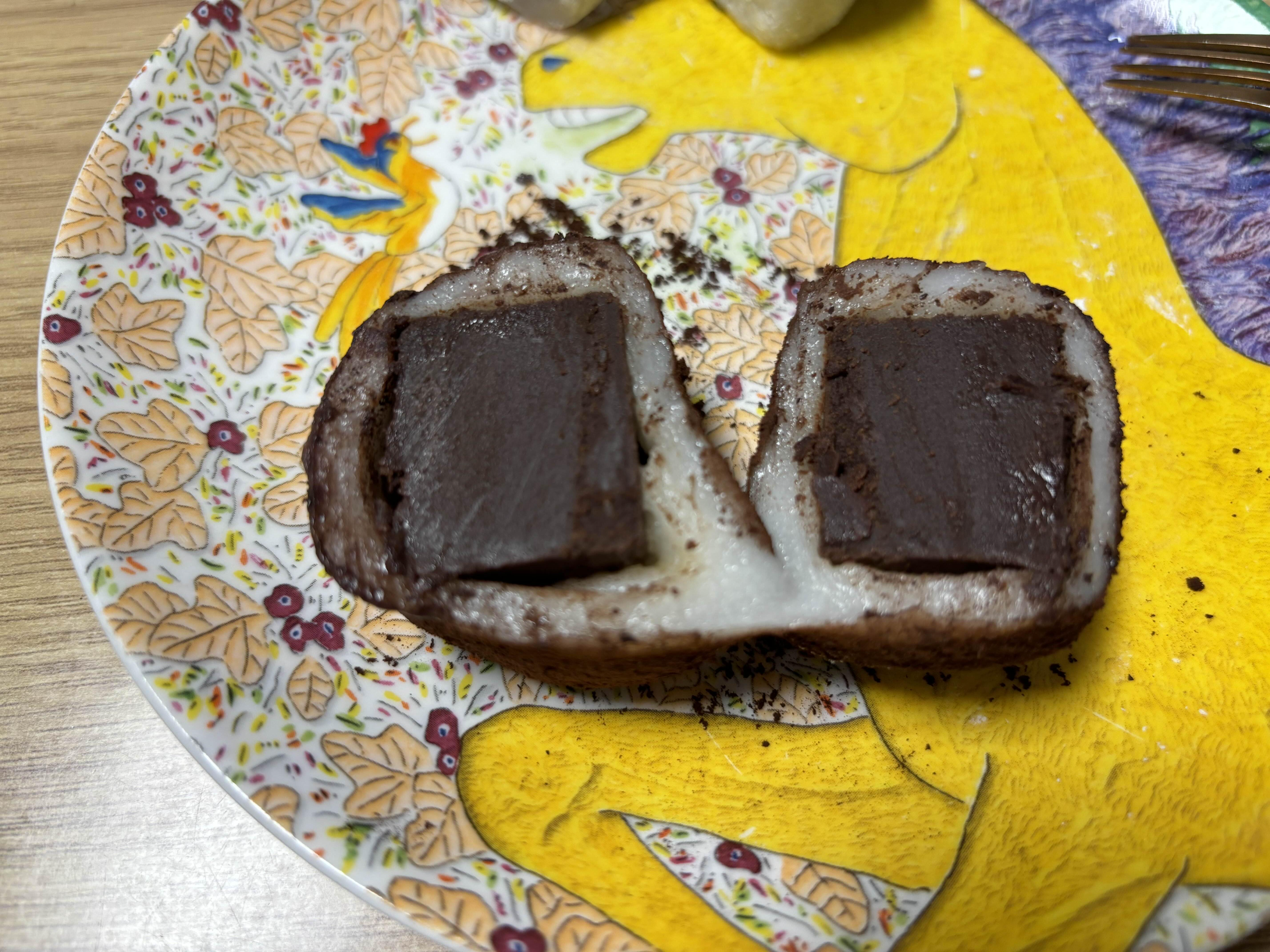 생초코 모찌는 과일 모찌보다 오히려 맛이 좋았다. 팥은 따로 들어있지 않고 생초코가 맛이 깊다. 겉 부분은 초코가루에 굴려져 나온다. 세 가지 모찌 중에 제일 맛있었음!