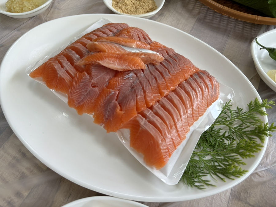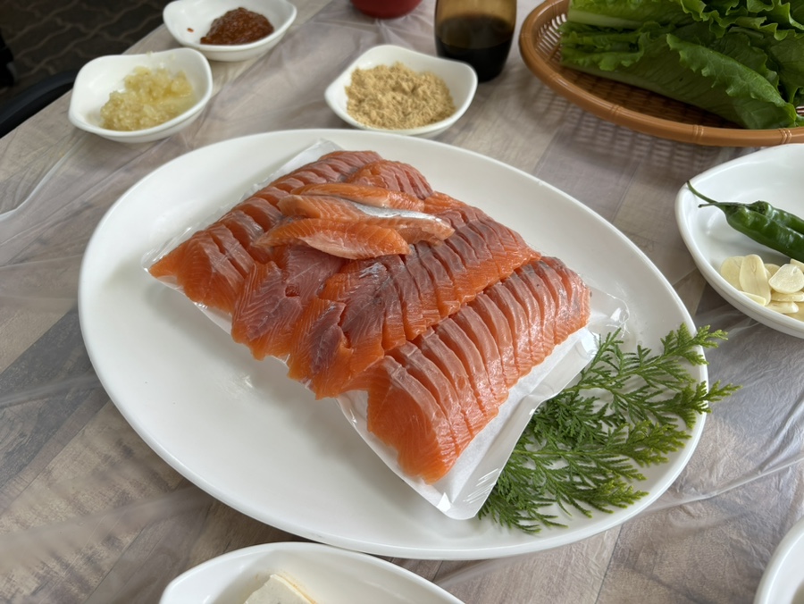 우리가 아는 그 송어회맛! 기름지고 부드러운 맛이다.