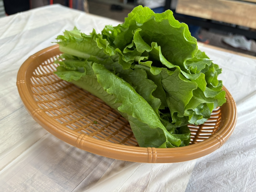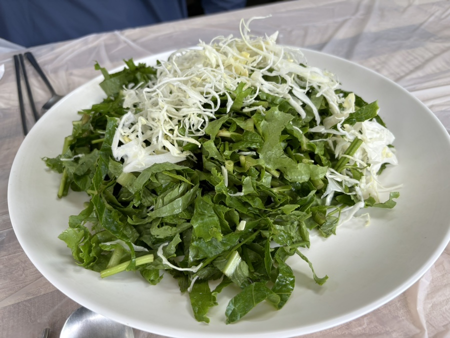 송어회와 같이 먹을 수 있는 양배추, 상추, 미나리 채와 쌈이 나온다.