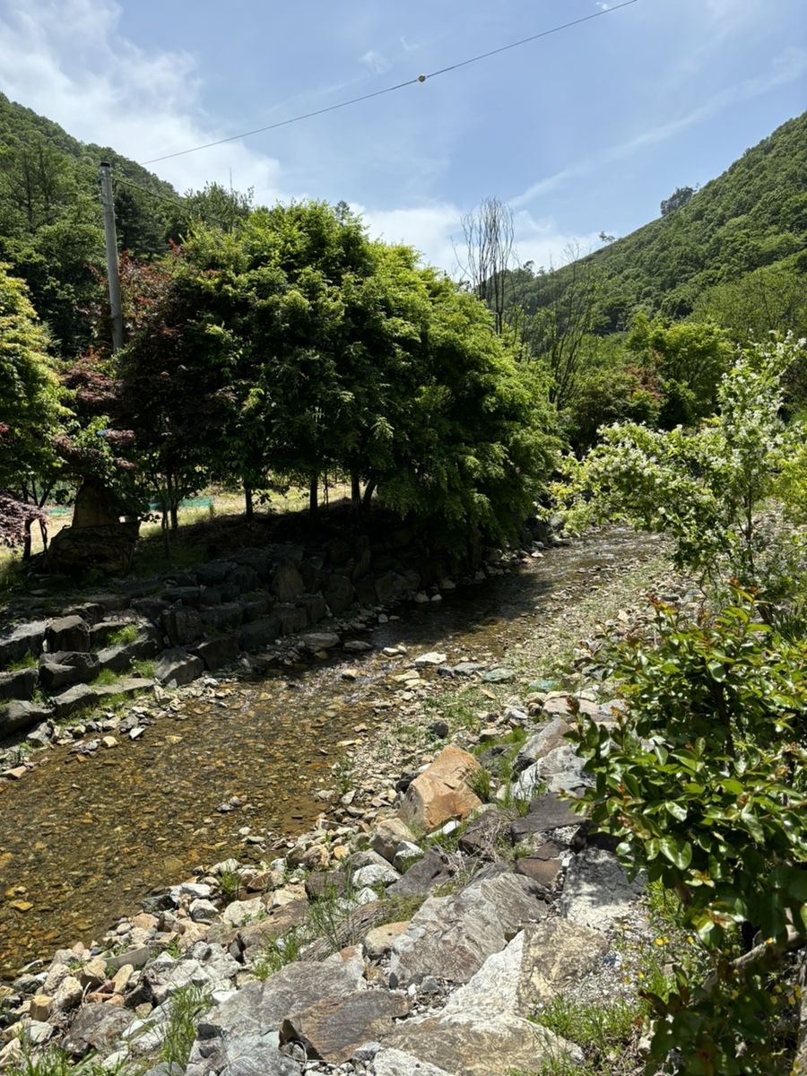 삼가천의 물줄기가 이어지는 시원한 계곡이 금산송어장 앞에 위치해있다.