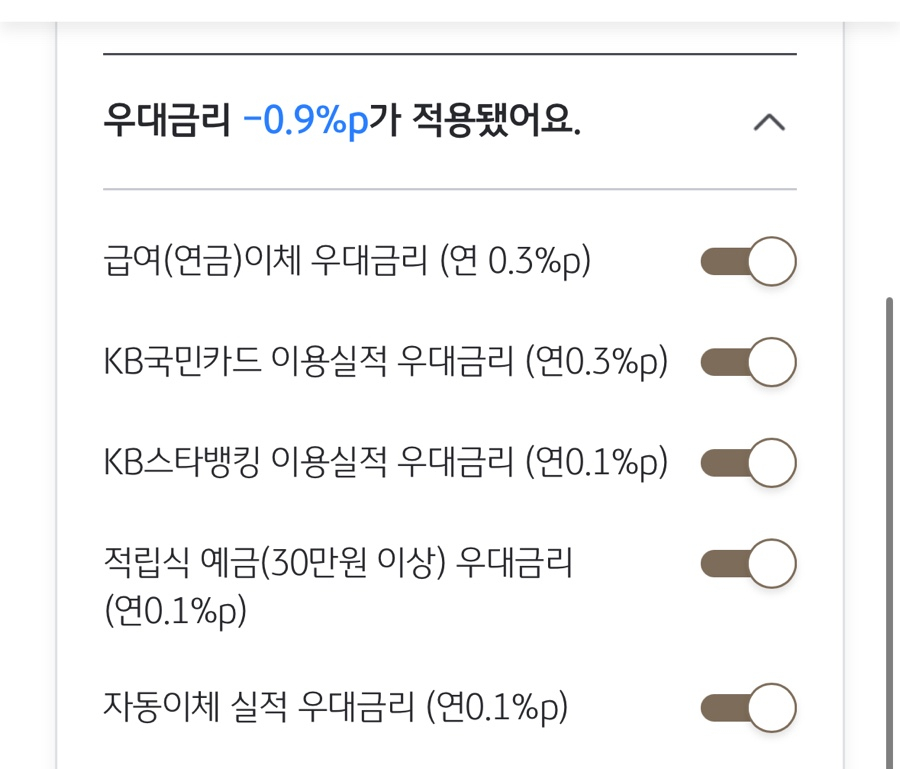 - 은행 입장에서는 카드도 이용하고 적금도 해야 하는 등 조건이 있어야 은행에 유리하기 때문에 이전에 대출받을 때도 우대금리 적용을 받을 수 있는 상품을 추천해 주었을 것으로 예상한다.