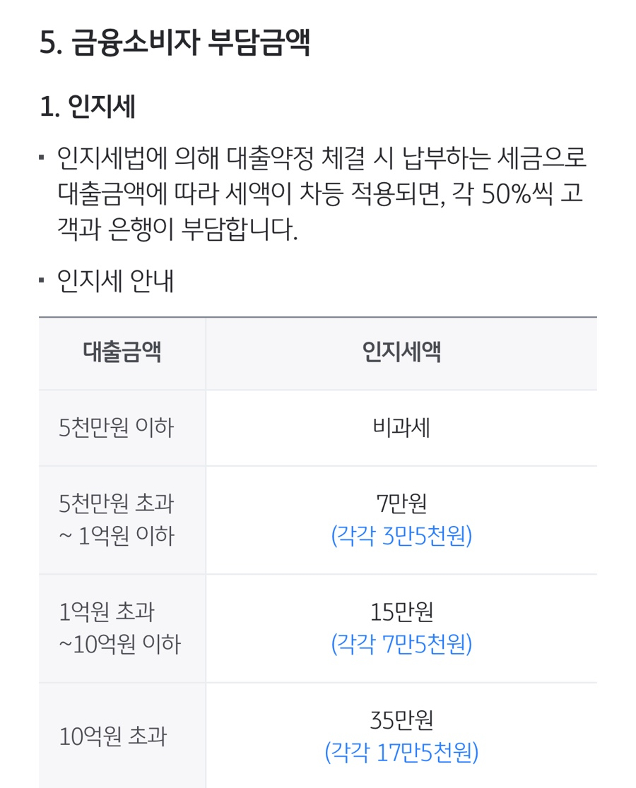 - 예전에 는 5천만 원 초과해서 대출받은 적이 있어 인지세 3만 5천 원을 냈던 기억이 있다.