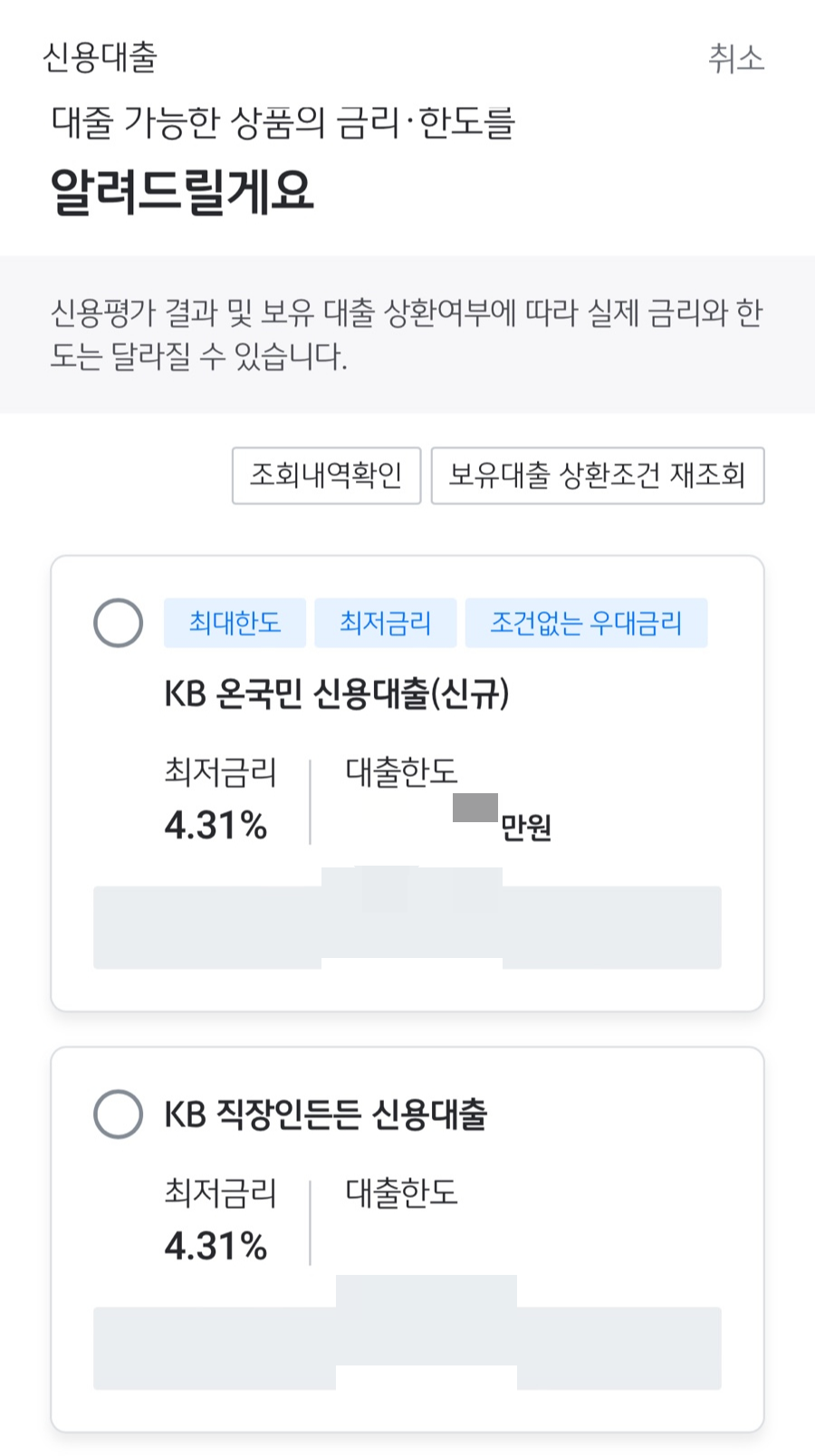 - 대출조회 링크가 문자로 와서 국민은행에서 대출상품을 알아보게 되었다. (20년 첫 대출이 국민 신용대출)