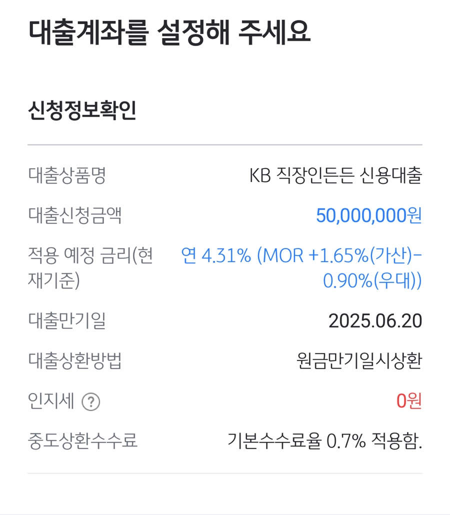 - KB 온 국민 신용대출(신규)이 4.31%로 상당히 잘 나와서 갈아타야겠다고 '생각'만 했다.