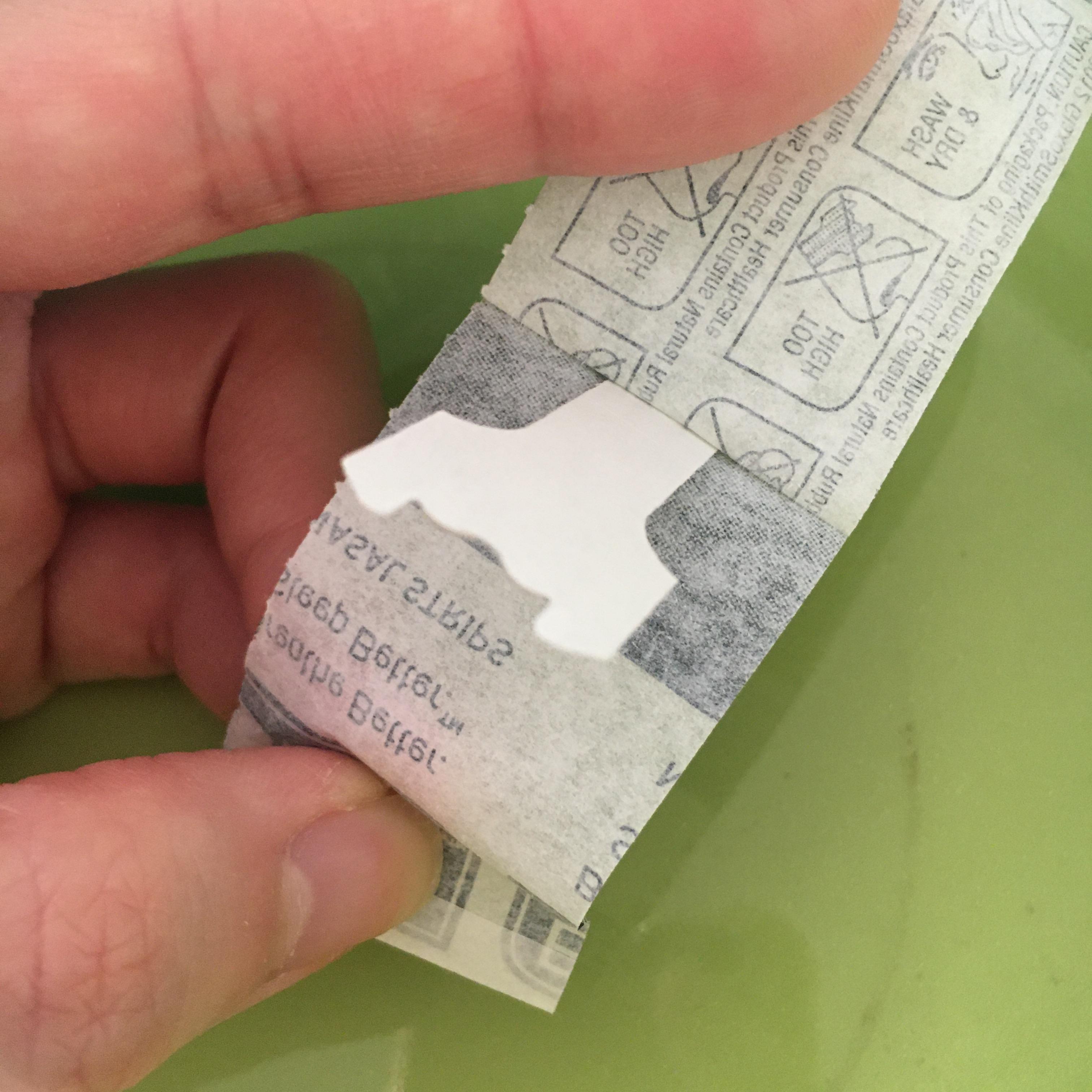 접착제가 노출되도록 보호지를 제거한 다음 코에 코 스트립을 놓는다. 위치가 매우 중요하다. 스트립은 코 상측면 부분에 코 너비를 따라 중앙에 위치해야 한다.