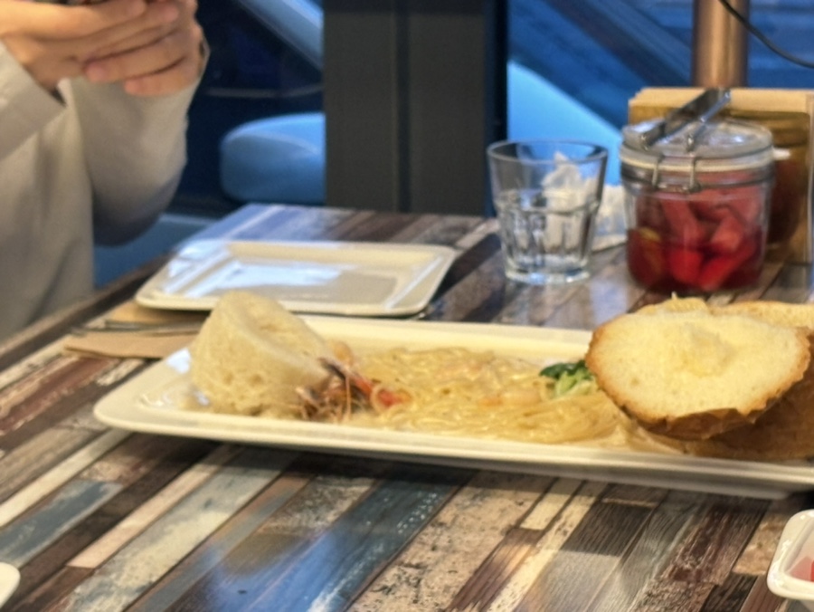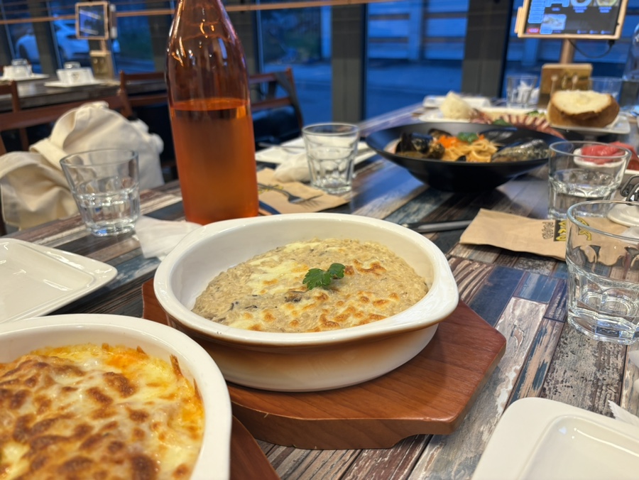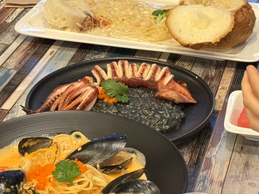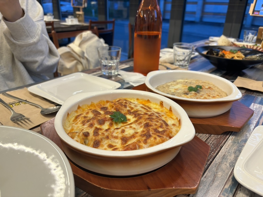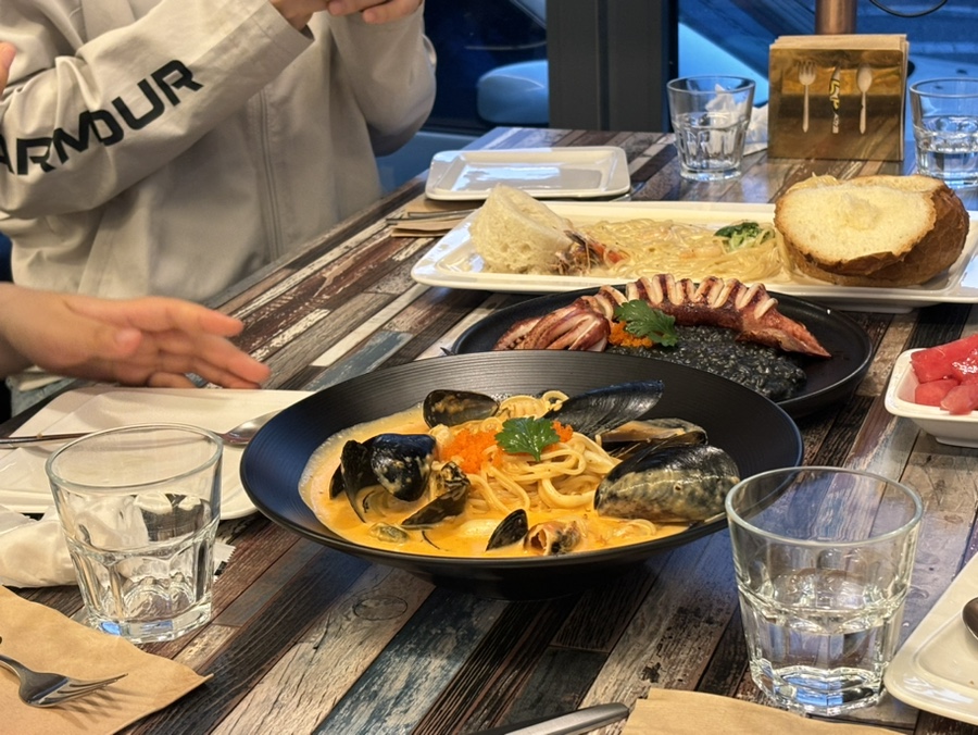 창가 쪽부터 빠네, 먹물리소토, 로제 해산물 파스타다.