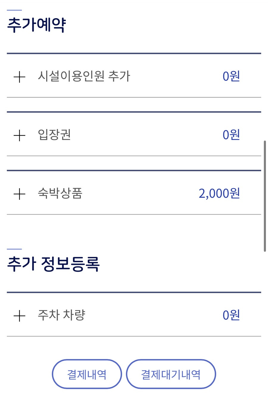 - 1박 2일이 기준이라 2박 이상을 원할 경우, 예약을 2번 하면 된다. 운이 좋으면 같은 호실이 나올수도? 옮겨야할수도!