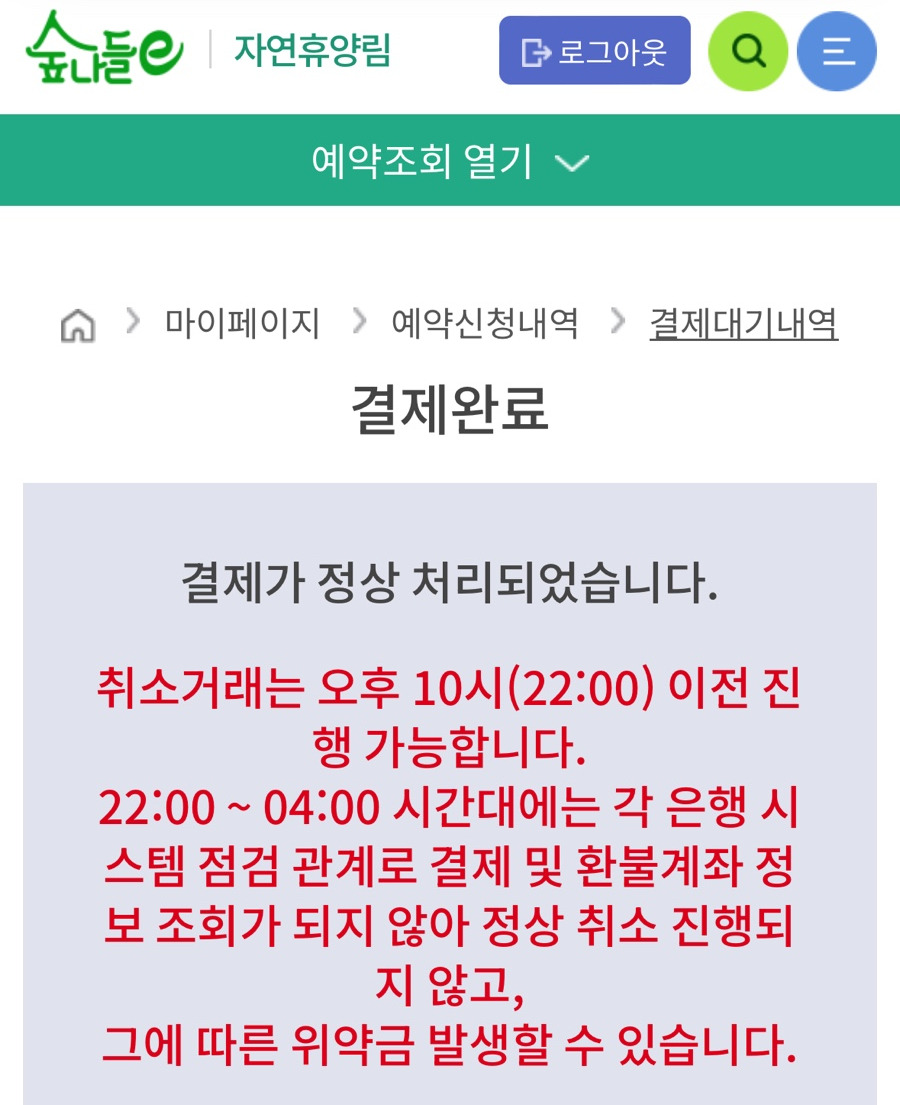 - 숲나들e 사이트에서 온라인 예약만 가능하다.