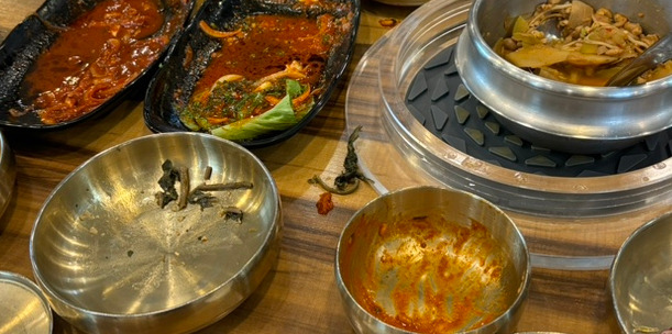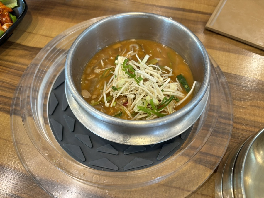청국장이 기본으로 나왔다. 버튼을 누르면 냄비받침대가 작동되면서 청국장이 보글보글 끓는다. 몇 번 본 건데도 볼 때마다 신기함 ㅎㅎㅎ