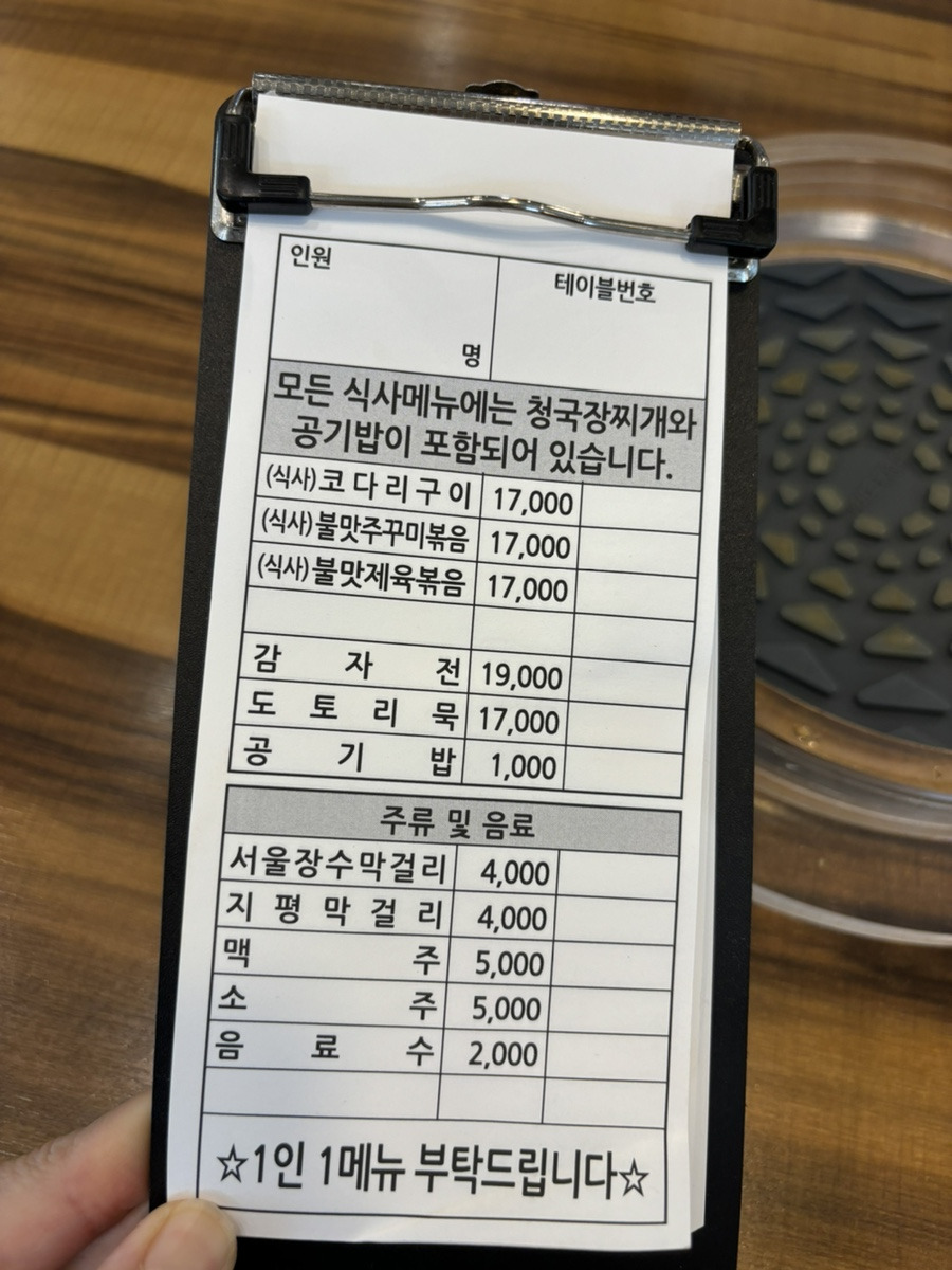 엄마가 친구들이랑 코다리 구이 자주 먹었다고 해서 불맛주꾸미볶음 하나, 불맛제육볶음 하나 주문했다. 1인분씩 주문도 가능해서 좋았다. 식사메뉴는 모두 인당 17,000원이다.