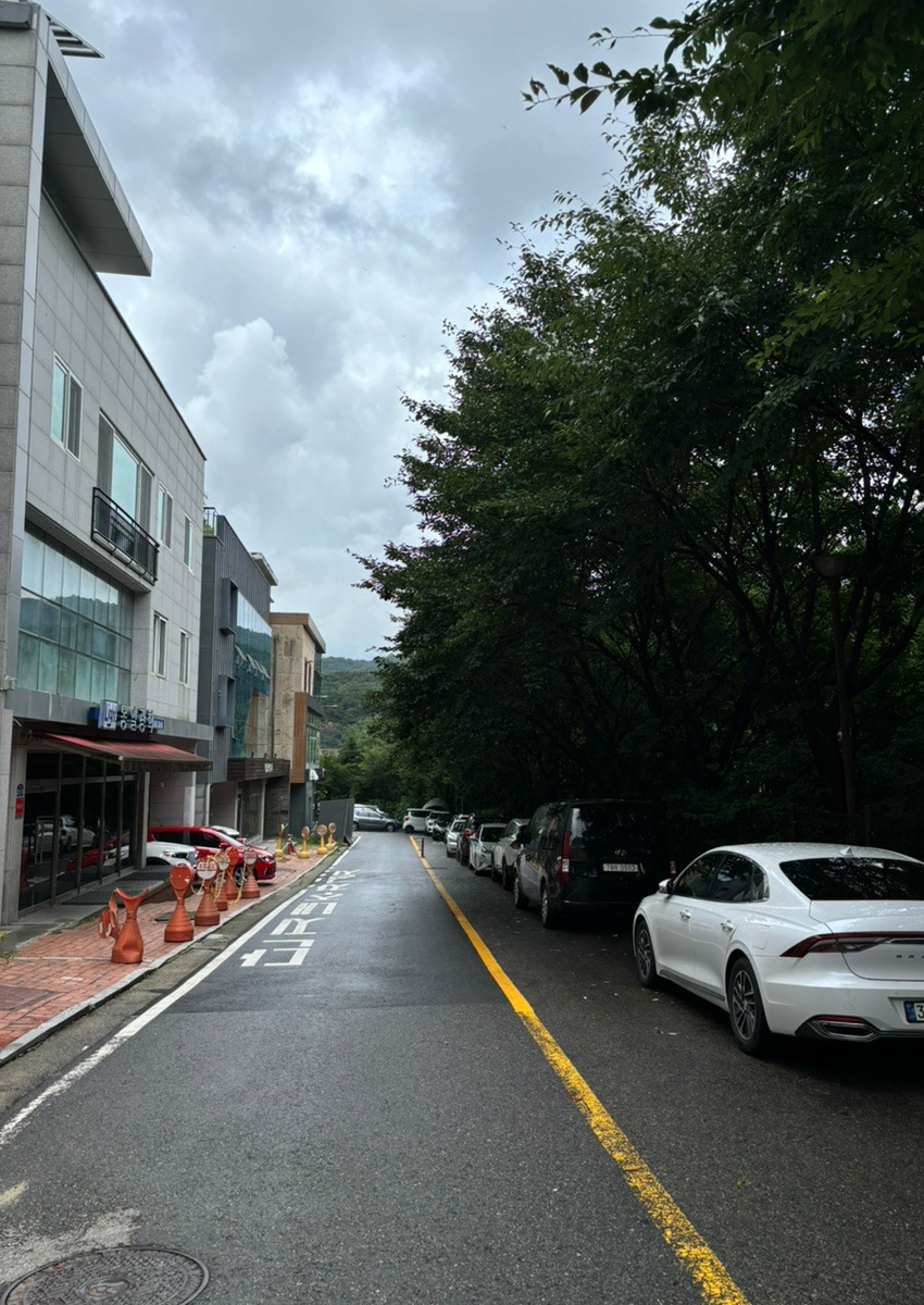 북한천을 따라 가변주차 가능하다. 흰색 선이다! 나는 운 좋게 주차함.