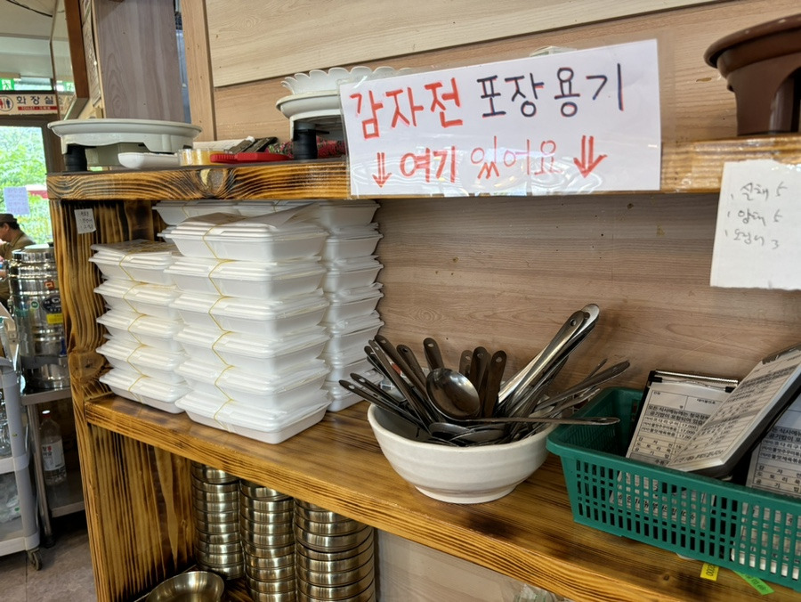 감자전을 주문한 경우, 남기는 경우가 있으면 포장해 갈 수 있도록 포장용기 준비됨