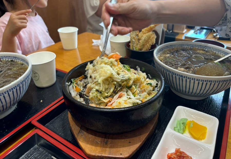 어린이들의 밥도둑, 크레미 치즈알밥(8,500원)이다. 소고기알밥보다 좀 더 고소하고 치즈가 들어가서 살짝 느끼하다. 어린이들은 소고기 알밥보다 확실히 크레미 치즈알밥을 좋아했다. 어른인 나는 (ㅎㅎ) 덴소바가 가장 맛있었던 거 같다. 사실 좀 급하게 먹은 감이 있어서 소화가 잘 되진 않았지만, 맛있게 먹은 점심이었다!