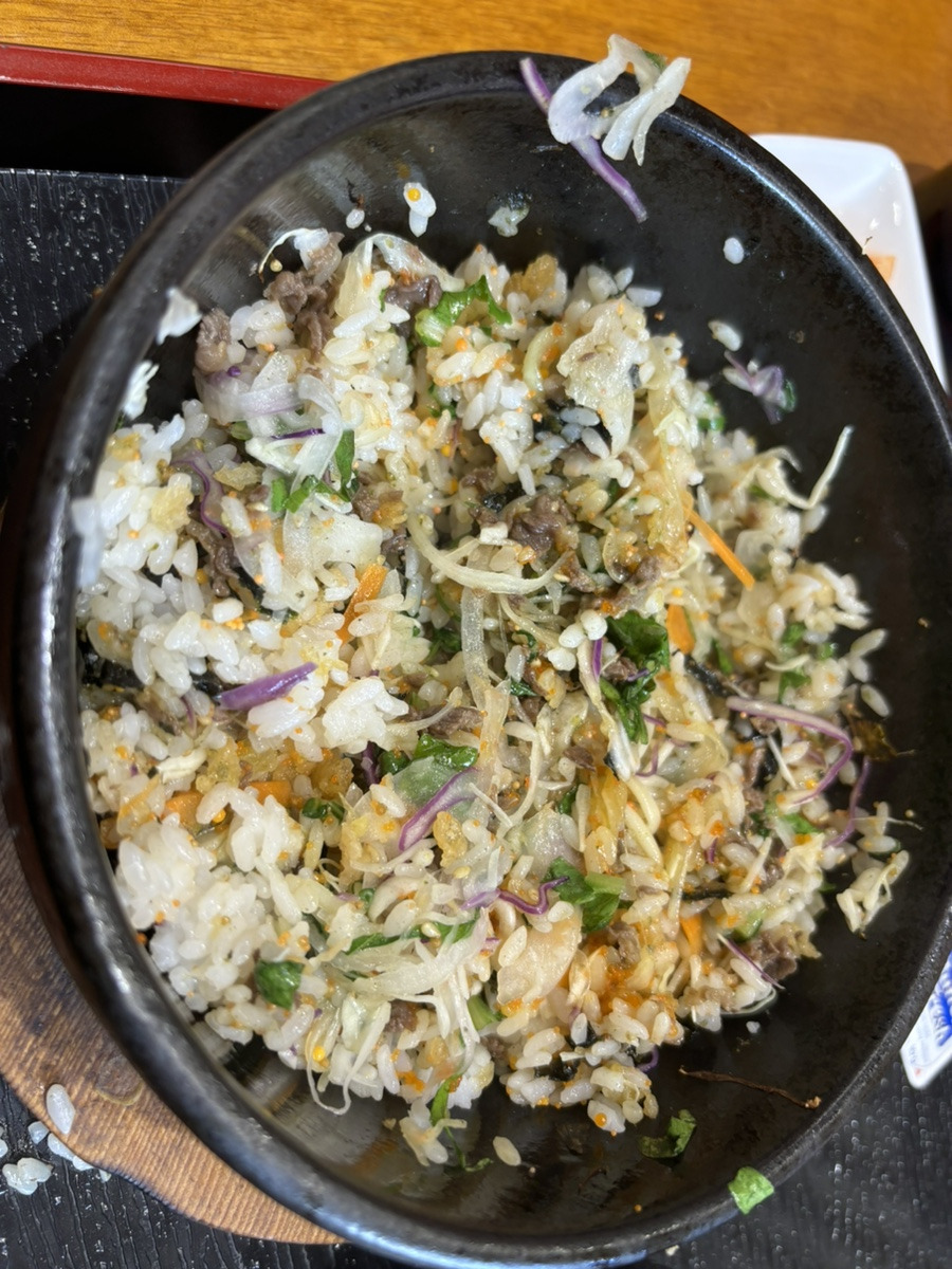 이것은 소고기알밥(8,500원)이다. 마음이 급해서 비빈 사진 뿐이다. 돌솥이 많이 뜨겁기 때문에 어린이들이 있었던 우리 테이블을 사장님이 많이 신경 써주셔서 참 감사했다. 소고기 알밥은 담백하면서 든든한 맛이었다.