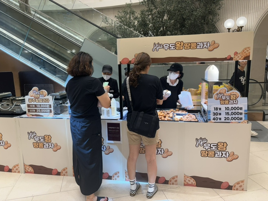 휴가 앞두고 기침 때문에 계속 약을 먹었더니 몸이 천근만근 가라앉고 평소에 먹지도 않던 간식이 당겨서 신세계 갔을 때 사 먹은 제주우도 왕땅콩과자 후기!