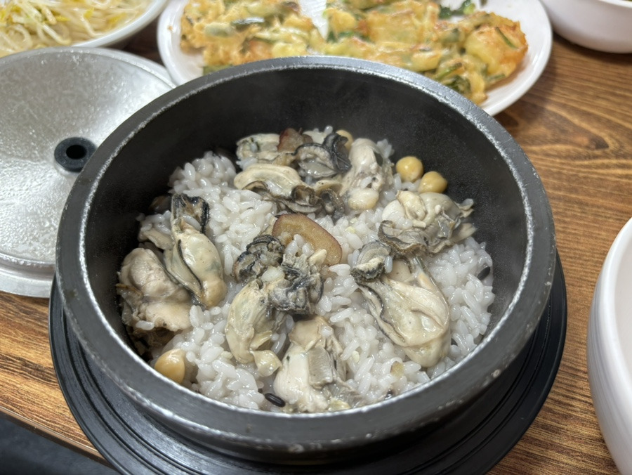 통영산 굴이 낙낙하게 들어갔다. 쌀 밥은 갓지어진 촉촉한 느낌!