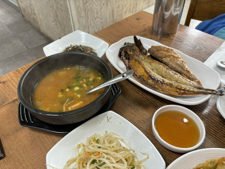 밑반찬의 스케일... 엄청나다. 무려 새우장을 준다. 엄마랑 나는 가장 많이 찾는 메뉴로 추정되는 생선구이+파전+영양굴밥 2인 세트를 주문했고 가격은 38,000원이었다.