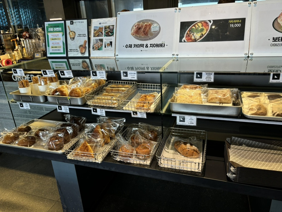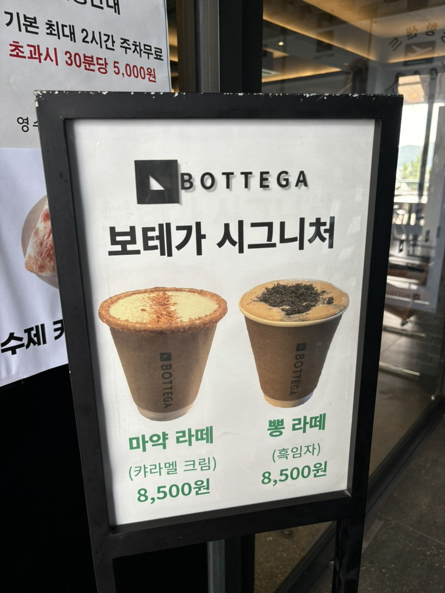 제주 마음 샌드에 이어 인천 공항 샌드가 판매 중이다. 보테가 카페의 시그니처는 레몬 에이드, 흑임자 라테, 츄로 스페너, 레몬 커피다, 마약라테, 뽕라테가 있다. 시그니처인 흑임자 라테와 따뜻한 아메리카노 한 잔을 주문해 보기로 한다.