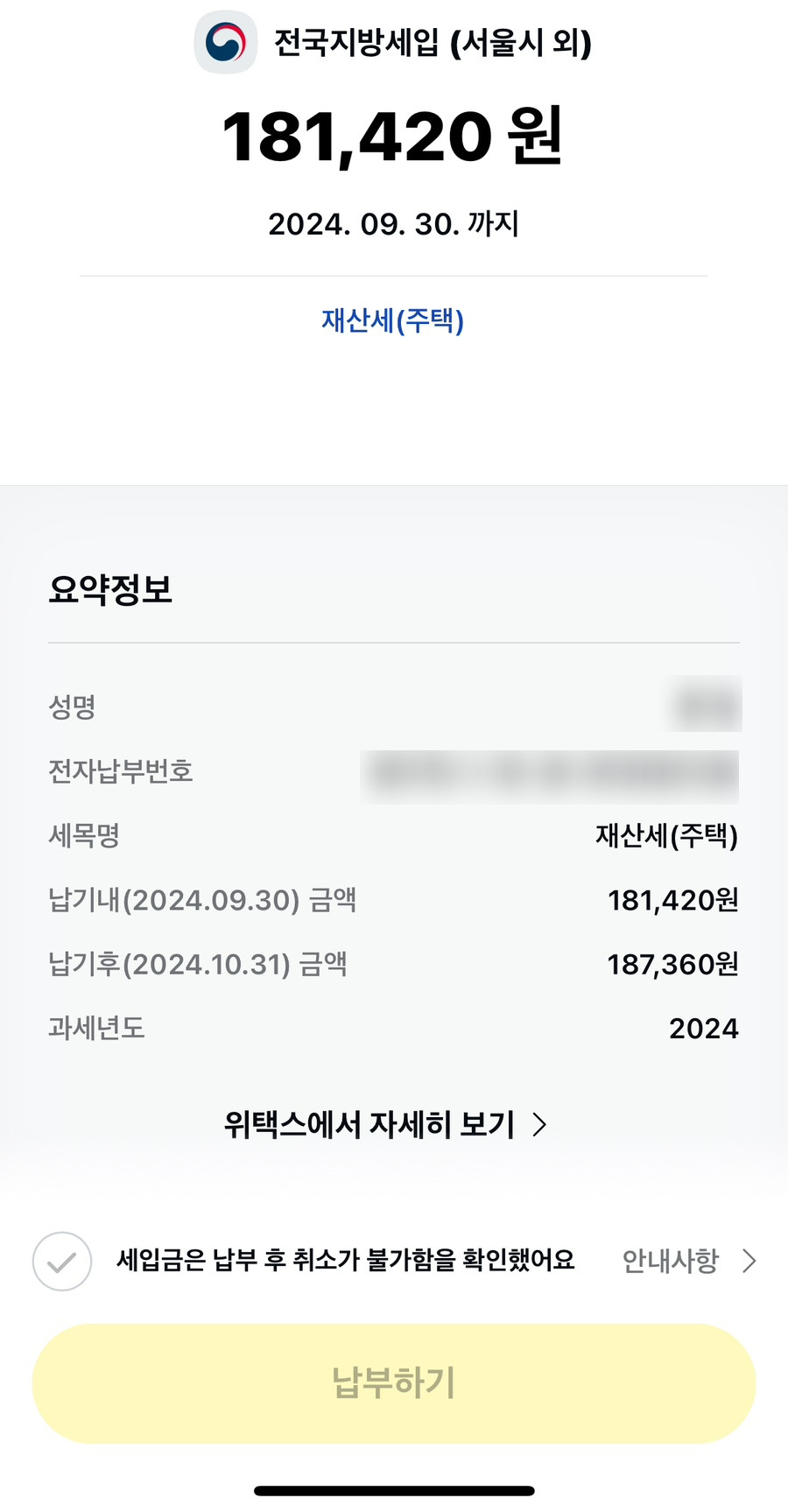 재산세 2024년 9월 주택 2 기분 납입