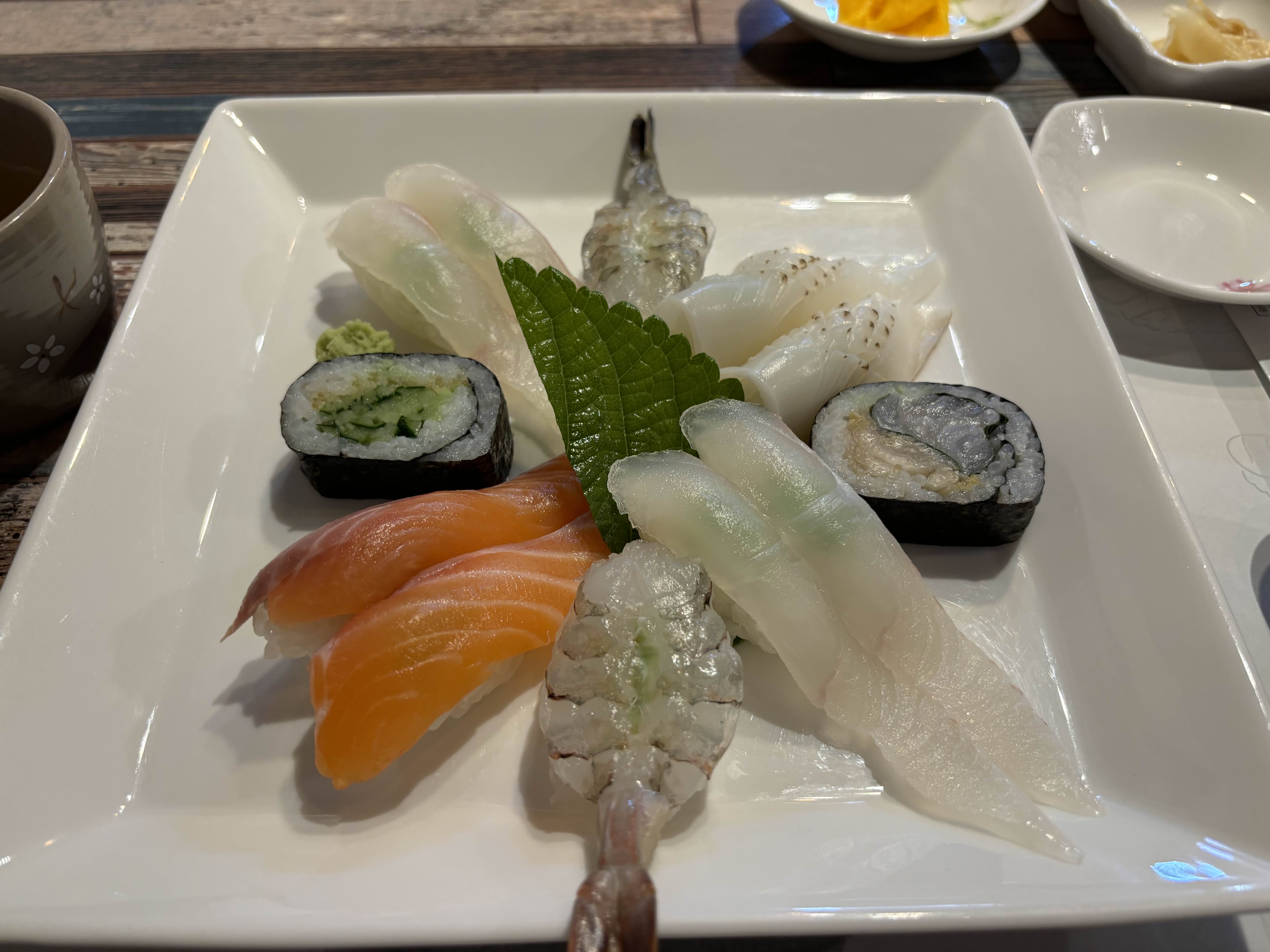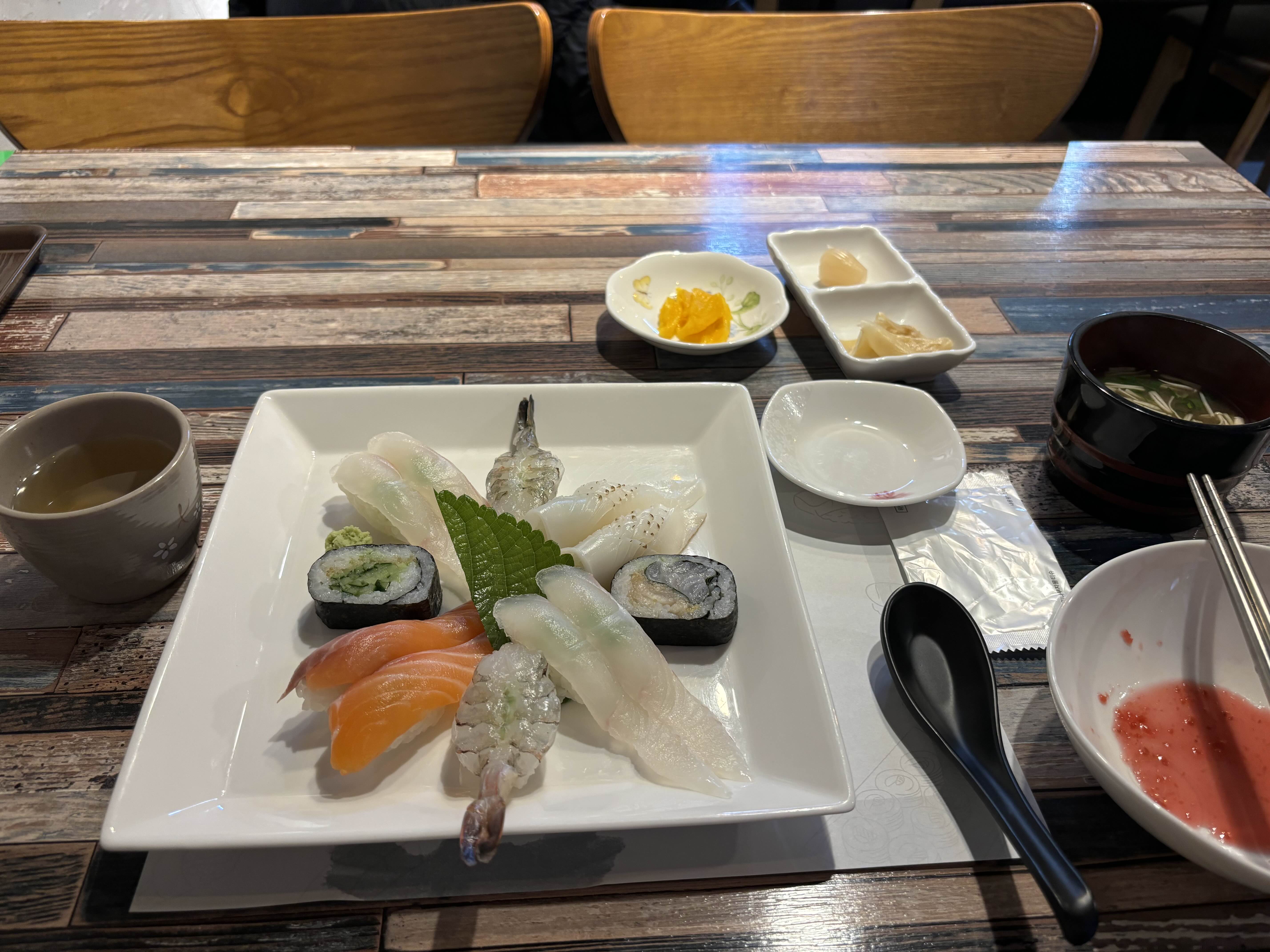 그 초밥집은 숙성회인 선어를 사용하는데, 식감이 정말 미쳤다. 쫀득한 식감이 자꾸 생각날듯하다. 나는 초밥을 먹을 때 광어 맛이 늘 중요한 사람인데, 광어가 제일 맛있었다. 쫄깃함을 어찌 표현하면 좋을까...! 연어랑 한치, 생새우 다 내가 좋아하는 메뉴로만 나와서 더 기분 좋았다. 오 그리고 마끼가 생각보다 많이 맛있었음. 왼쪽 마끼는 알의 식감이 느껴졌고, 오른쪽 마끼는 묵은지와 광어조합이었던 걸로 기억하는데, 묵은지가 참기름으로 볶아서 고소한데 담백했다.