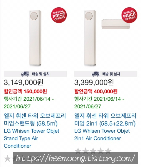 엘지 휘센타워 오브제프리미엄 2 in 1 (58.5 + 22.8 제곱미터)